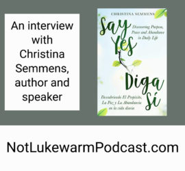 A few days ago, I was interviewed on the Not Lukewarm podcast by host, Deanna Bartalini to speak about my just released book, Say Yes: Discovering Purpose, Peace and Abundance in Daily Life. During the interview, I share about why I wrote the book, its contents, and also about some of the challenges we all face on the spiritual journey. Hope you enjoy this podcast as much as I enjoyed being a partof it! Here is the link https://ultimatechristianpodcastnetwork.com/an-interview-book-notes-with-christina-semmens/